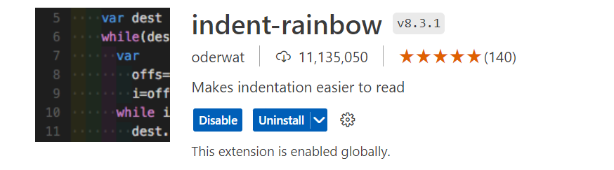 코드의 들여쓰기 정도(tab)를 서로 다른 색으로 구분한다.